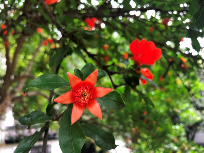 此情此景,宛如一位美丽娇艳的女子,折下一朵石榴花用玉钗簪到发髻上,红色的鲜花、乌黑的秀发,翠绿的玉钗交相辉映。